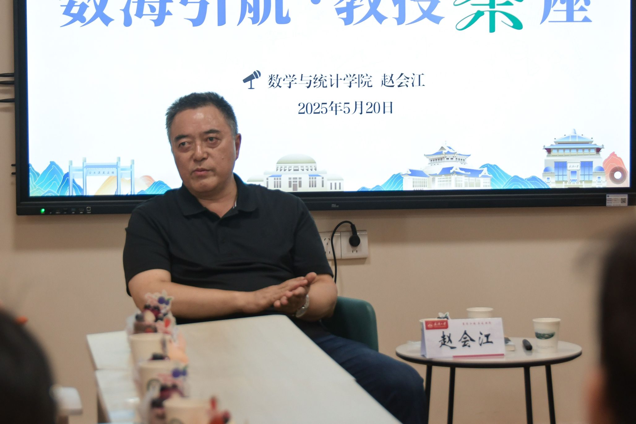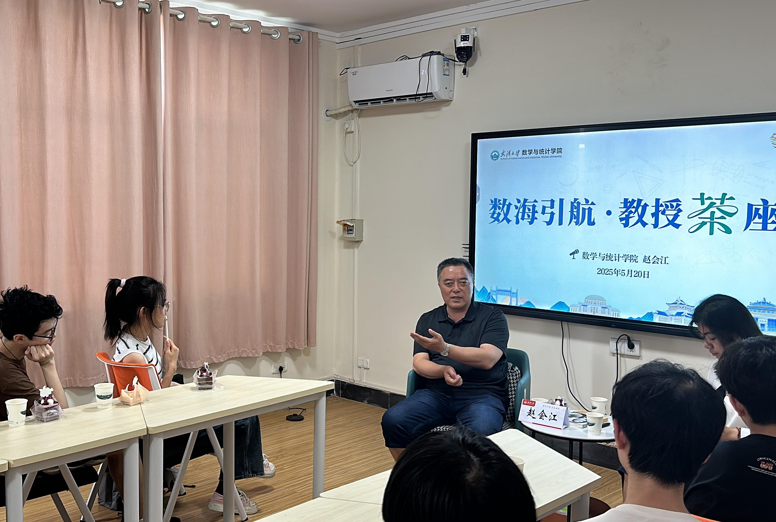 On May 21, the second installment of the “Navigating the Sea of Numbers: Professors' Tea Talk” series was successfully held at the “One-Stop” Student Community in Hubin Building 7. This session featured Professor Zhao Huijiang as the keynote speaker, who shared his academic journey, life insights, and understanding of mathematics under the theme “The Beauty of Mathematics and Reflections on Life.” Over a dozen undergraduate and graduate students attended the event, which was hosted by undergraduate student Chen Muyu.