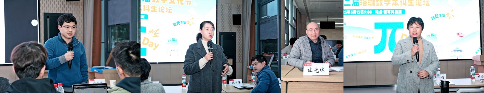 In the afternoon, twelve undergraduate speakers from Wuhan University, Southern University of Science and Technology, Beijing Normal University, Zhejiang University, Tsinghua University, University of Science and Technology of China, Xi'an Jiaotong University, and National University of Defense Technology delivered keynote presentations. Faculty members in attendance included Liu Xiaochun, Head of the Department of Pure Mathematics; Dai Shuyang, Head of the Department of Information and Computational Science; Jiang Guanglin, Head of the Department of Probability and Statistical Science; and Wang Lijuan, Associate Head of the Department of Applied Mathematics, who provided commentary.